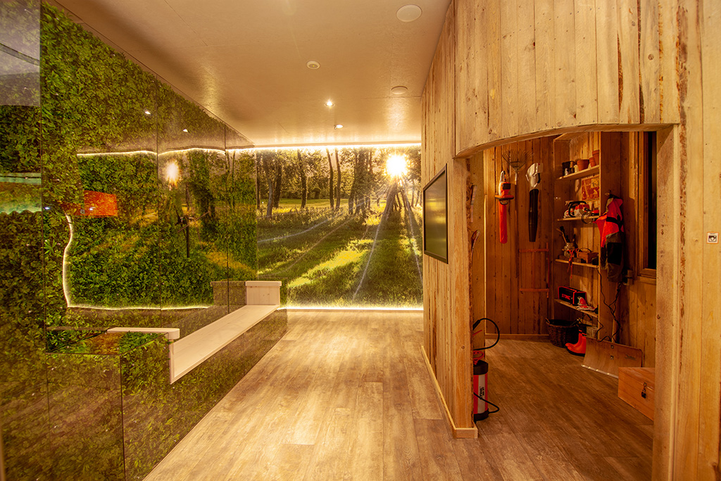 “Geräteschuppen”in der Stihl Markenwelt im Spiegelpavillon (Bild: STIHL)