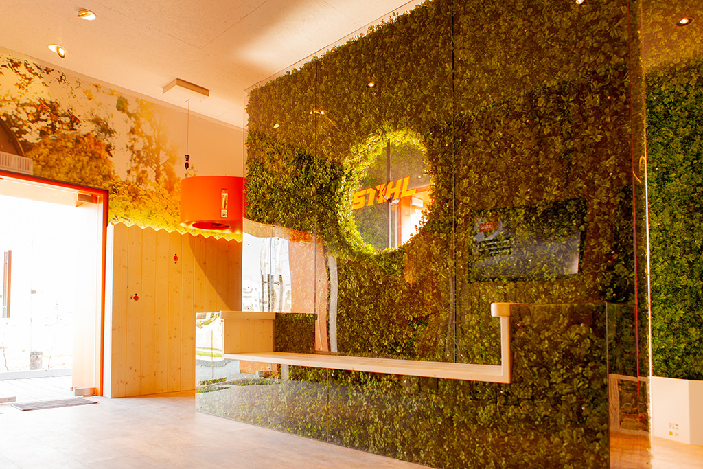 Eingangsbereichder Stihl Markenwelt im Spiegelpavillon (Bild: STIHL)