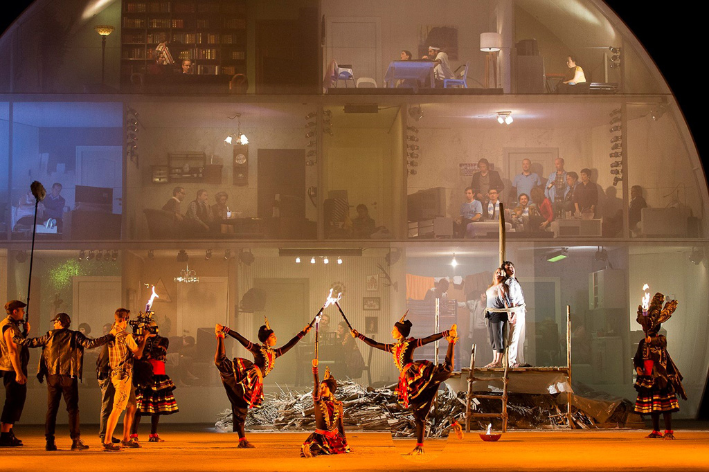 Beleuchtetes Bühnenbild der Genfer Oper(Bild: Werner Kmetitsch/Oper Genf)