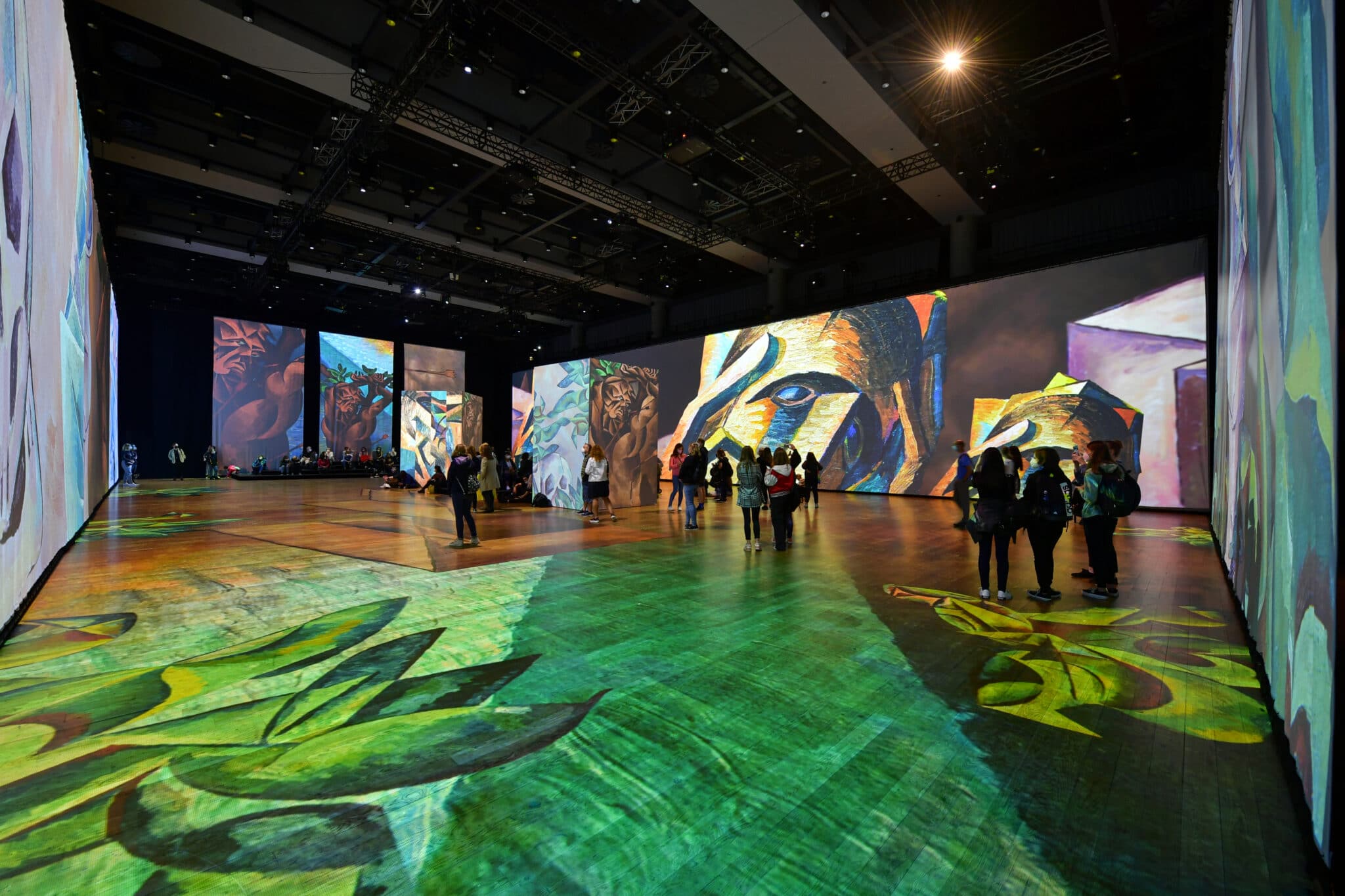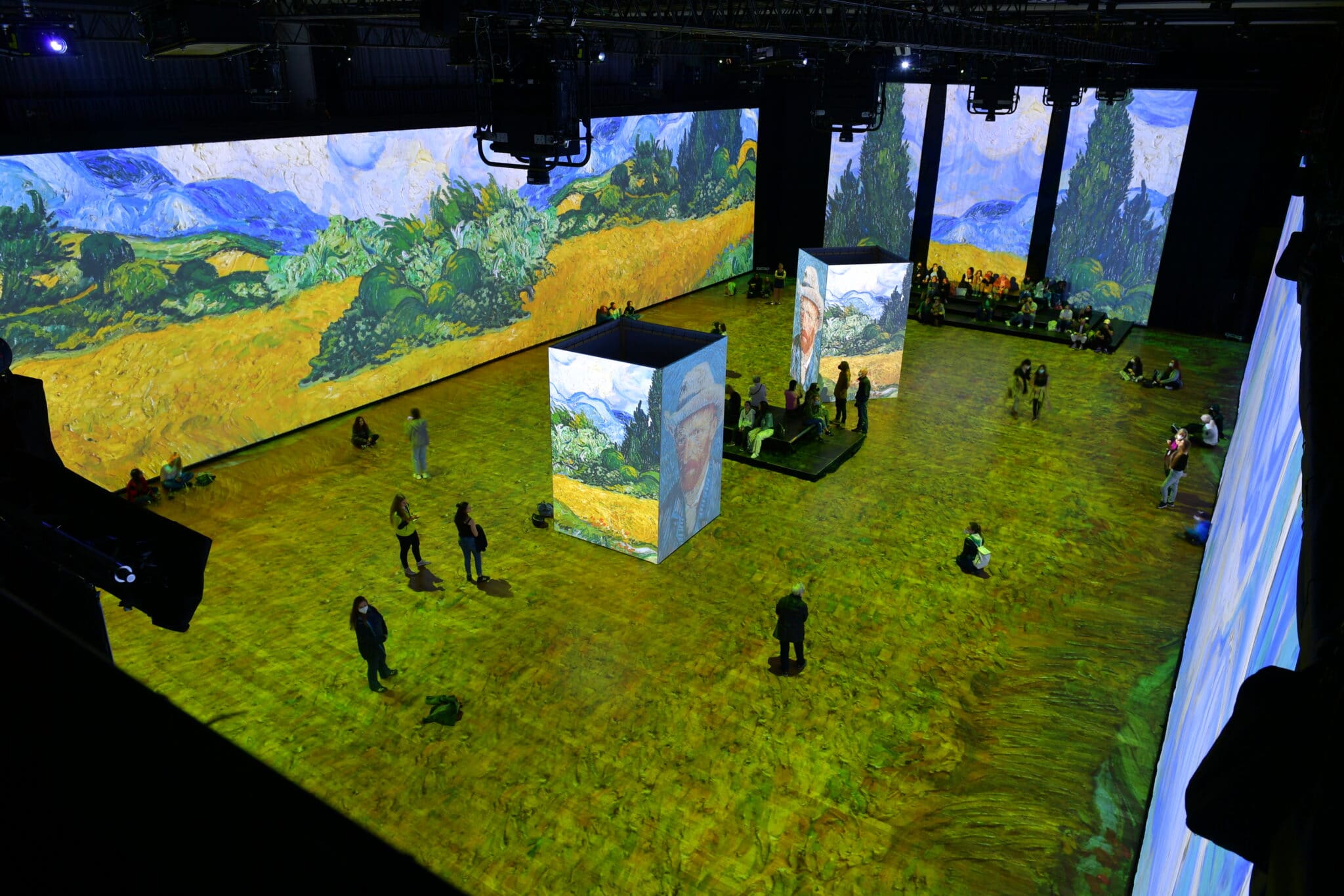Die Veranstaltung Bylo nebylo, Van Gogh, Monet, Renoir im Prager Forum Karlin in der Tschechischen Republik inszeniert mithilfe von Panasonic Projektoren die größten Impressionisten neu. Durch den Einsatz von 28 Projektoren füllen die Meisterwerke vier hohe Wände rund um den Saal, zwei Blöcke in der Mitte des Raums und den Boden unter den Füßen der Besucher:innen – untermalt mit Musik aus der Zeit.