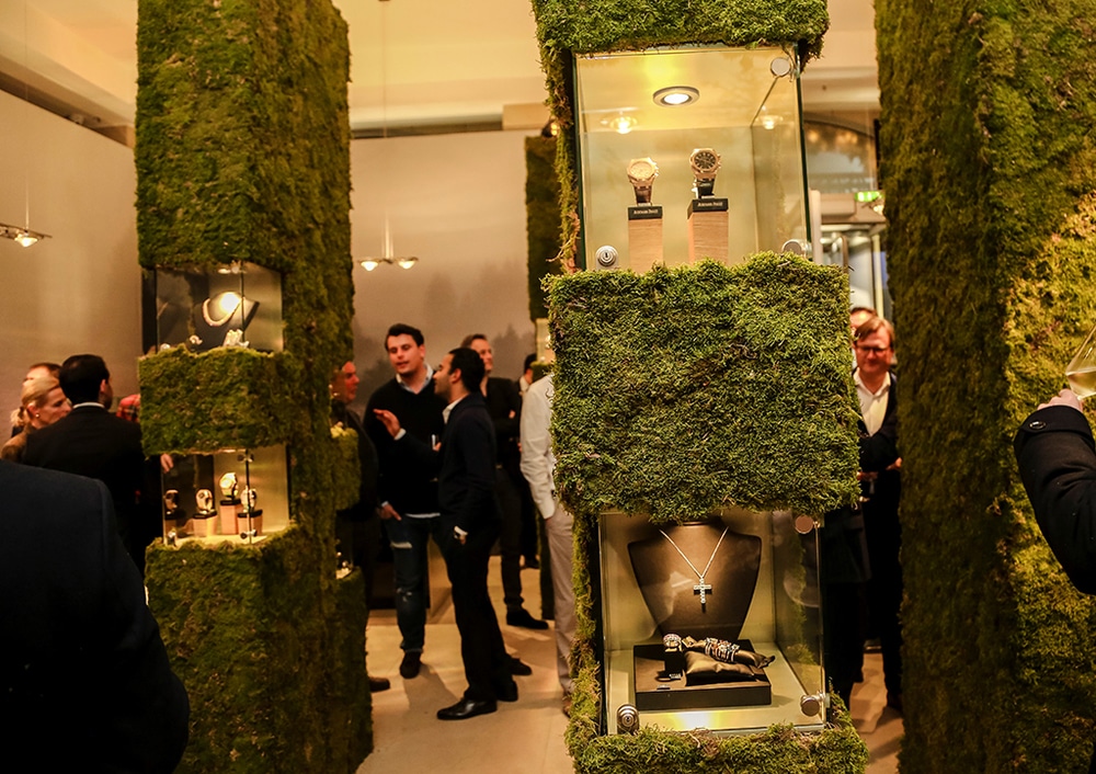 Abgerundet wurde die multisensorische Wahrnehmung durch ein ausgeklügeltes Duftkonzept, die Präsentation der exklusiven Uhrenkollektion durch attraktive Models und hochwertiges Fingerfood. Ein weiteres Highlight war die Akustik-Performance durch einen Beatboxer bei der ein tickendes Uhrwerk auf Natur- und Waldgeräusche traf.