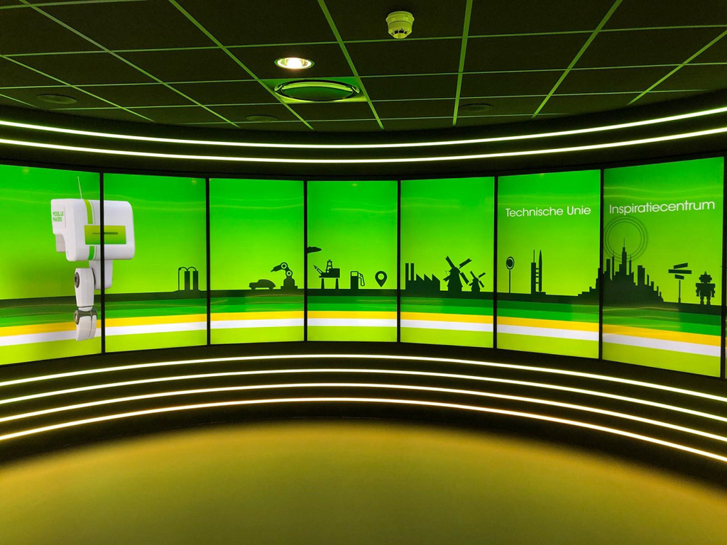 Um ihre Vision und Ambitionen zu verwirklichen, hat sich die Technische Unie mit dem nahegelegenen Integrationsspezialisten Hugo Janzen AV Projecten B.V. und PPDS zusammengetan, um eine komplette AV-Lösung mit 46 angeschlossenen Philips Q-Line UHD-Displays (zwischen 43″-65″) zu installieren, die den futuristischen Veranstaltungsort zum Leben erwecken solleb. Dazu gehört ein vertikal montiertes Multi-Screen-Display, das die Besucher beim Betreten des Raums begrüßt.