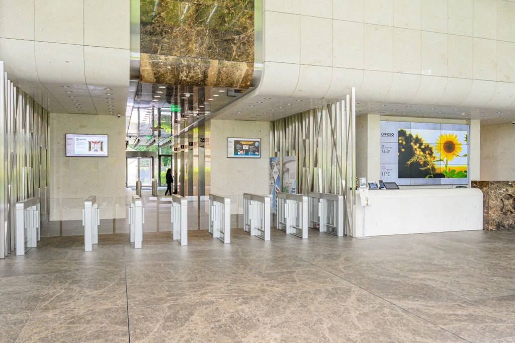 Um allen, die das WorkBetter-Gebäude betreten, sofort einen besonderen Eindruck zu vermitteln, wurde eine beeindruckende Wand aus Philips Unite LED-Displays der Serie 5000 mit 1,5 Pixel Pitch installiert. Die Philips Unite LED 5000 Serie unterstützt bis zu 12-Bit-Farben und HDR10+-Auflösung.