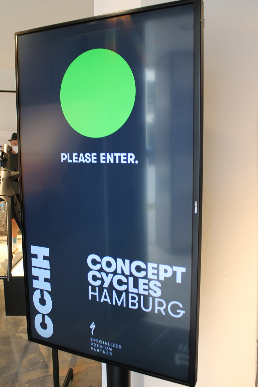 Concept-Cycles Hamburg ist laut Pressemitteilung einer der ersten Fahrradläden, der eine hochmoderne Ausstattung und ein Covid-konformes Pop-Up-Erlebnis mit der Installation einer Reihe von 17 hochentwickelten, interaktiven, digitalen Signage- und Videowall-Display-Lösungen von Philips kombiniert.