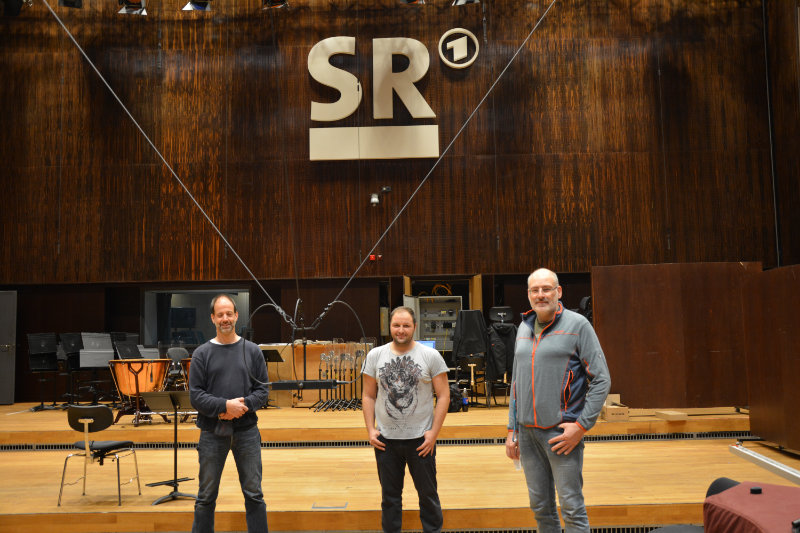 V.l.n.r.: Thomas Becher (Toningenieur SR), Christopher Engert (SALZBRENNER media), Ralf Schnellbach (Projektleiter SR) (Bild: Salzbrenner Media)