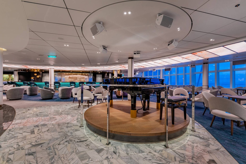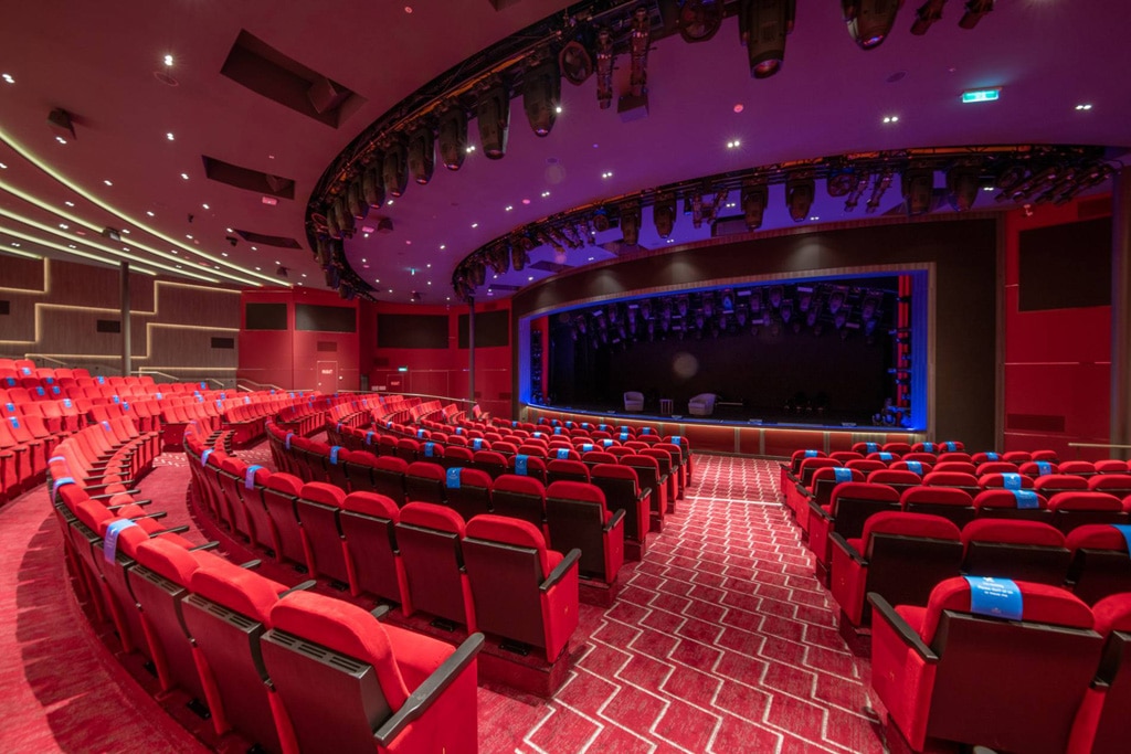 Eine weitere visuelle Besonderheit an Bord stellt zudem eine transparente und multimedial bespielbare Wand aus zehn einzelnen 49“-Displays dar, bei der vier Panele als schwenkbare Türelemente elegant umgesetzt werden konnten. Teil des Lichtkonzepts sind darüber hinaus die in fast allen Eventbereichen verbauten Showlight-Systeme von Robe, die mit ihren Scannern, Moving-Heads und LED-Scheinwerfern das verbindende Element der einzelnen Theater, Clubs und Live-Locations des Kreuzfahrtgiganten bilden. Darüber hinaus wurde das Schiffsinterieur mit insgesamt knapp 125 Quadratmeter hochwertigen und teils beweglich montierten LED-Wänden von Absen und einem insgesamt 720 exklusiv der Lichttechnik vorbehaltenen Schaltkreisen ausgestattet.