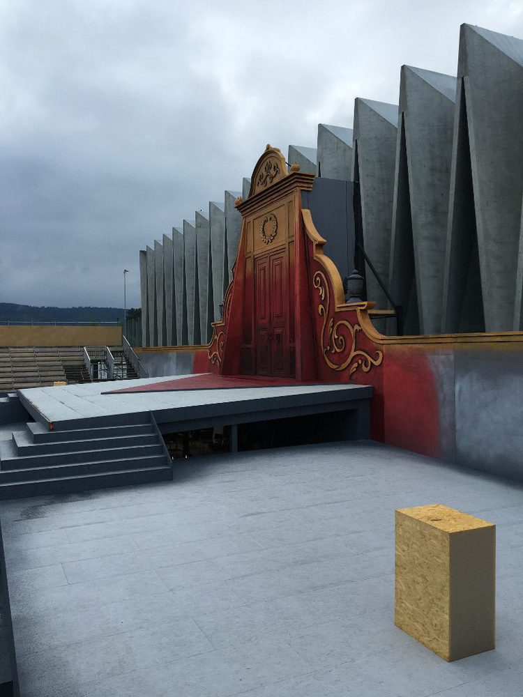 Für die optimale Positionierung der Lautsprechersysteme kam nur das Herzstück der Bühne in Frage – ein rot-goldenes Tor, das gut zehn Meter hoch und 14 Meter breit ist. Jeweils links und rechts davon wurden zwei Focus Modular Stacks – jeweils bestehend aus zwei FM-440 und einer FM-110 –installiert. Focus Modular Lautsprecher sind hochleistungsfähige Hochton- bzw. Low-Mid-Module mit Fohhn Beam Steering Technologie: Ihr vertikales Abstrahlverhalten und ihr Schallneigungswinkel lassen sich mittels intuitiv bedienbarer Software in Echtzeit steuern und so an die raumakustischen Bedingungen perfekt anpassen. Dank ihres schlanken Designs und der gelungenen Integration hinter schalldurchlässigem Stoff – und trotz einer beachtlichen Höhe von fast sechs Metern – sind die Focus Modular Stacks auf der Bühne der Oper Schenkenberg für die Zuschauer komplett unsichtbar.