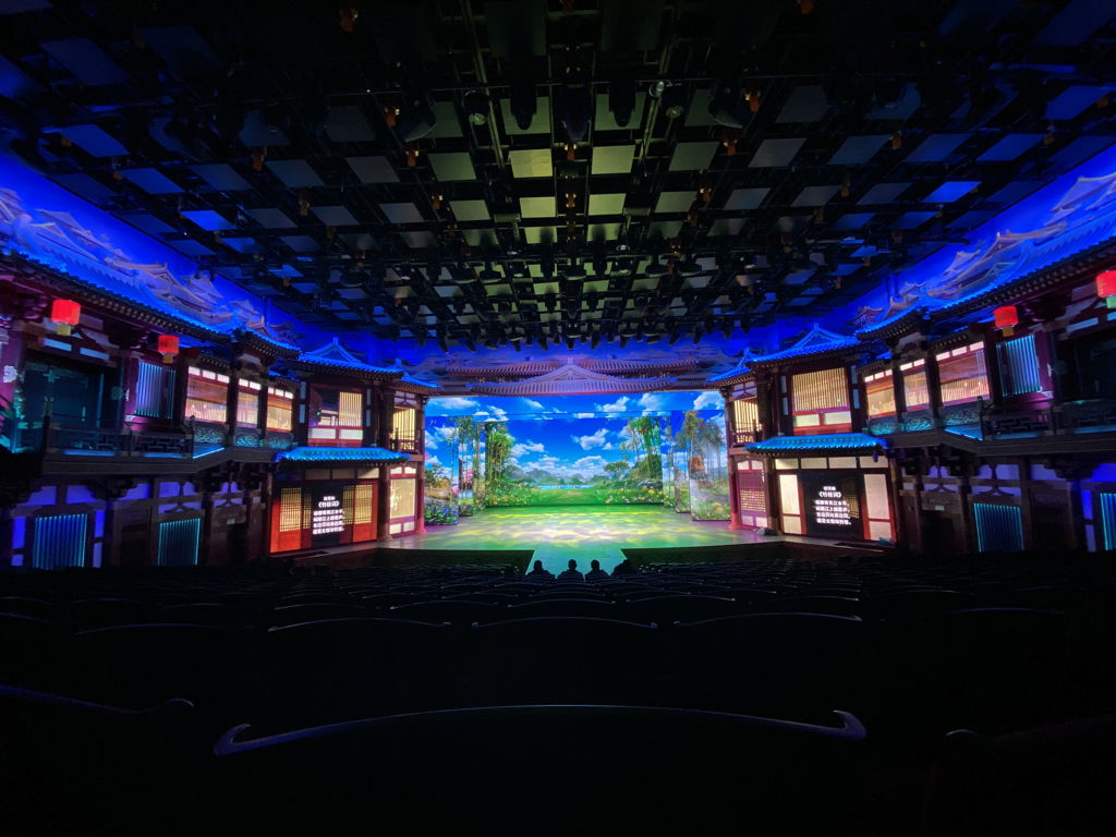 Dream Back to the Tang Dynasty verbindet Poesie, Musical und traditionellen Gesang und Tanz in einer einzigartigen Produktion, die die Besucher möglichst immersiv in Aufführung und Story einbinden soll. Das Theater selbst wurde entworfen um in eine 180° Videowand eingebettet zu werden, die einen großen Teil der sichtbaren Szenerie zeigt während eine 360° Surround Sound Lösung das eindrucksvolle Erlebnis komplettiert.