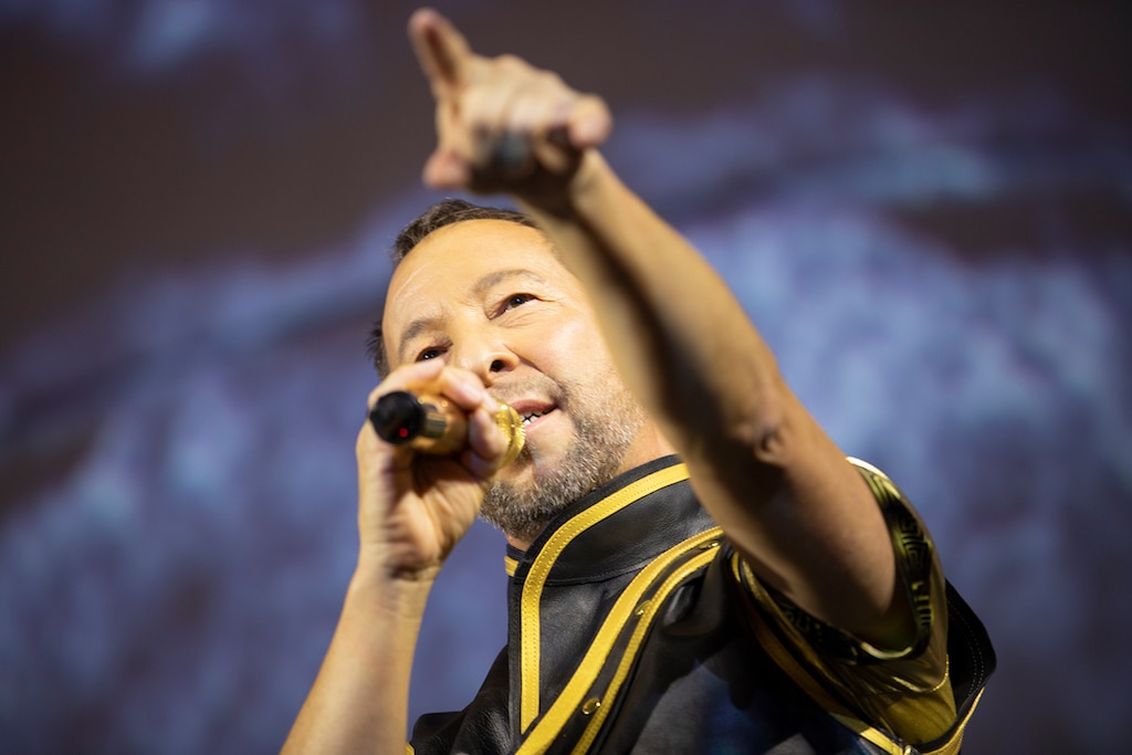 DJ BoBo mit einem vergoldeten Sennheiser Handsender (Bild: Yes Music / Bôregard Photo)