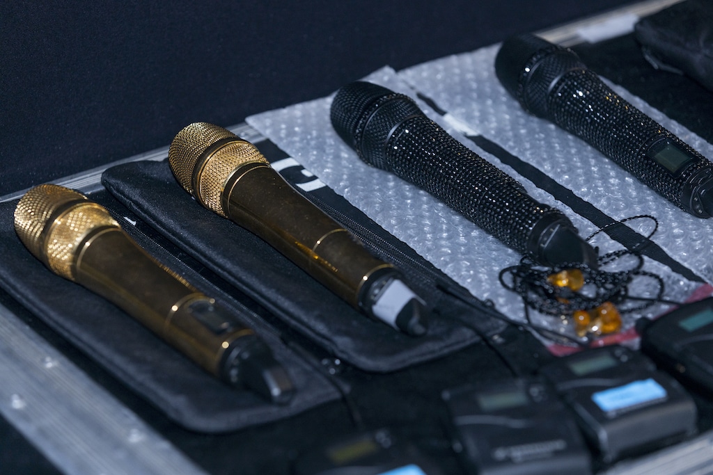 DJ BoBo verwendet bei seinen Auftritten unter anderem einen Sennheiser-Handsender SKM 2000, dessen Schaft und Kapselkorb durch eine Vergoldung auffallen. Ein gleichartig gestaltetes Sondermodell verwendet auch Sängerin Nancy Baumann, während die Stimmen von Kate Matl und Jesse Ritch von schwarzen Handsendern übertragen werden. Letztere sind mit Swarovski-Steinen besetzt und reflektieren das Bühnenlicht. Die Handsender sind durchweg mit Sennheiser-Mikrofonmodulen des Typs MMD 945 (Superniere) bestückt.