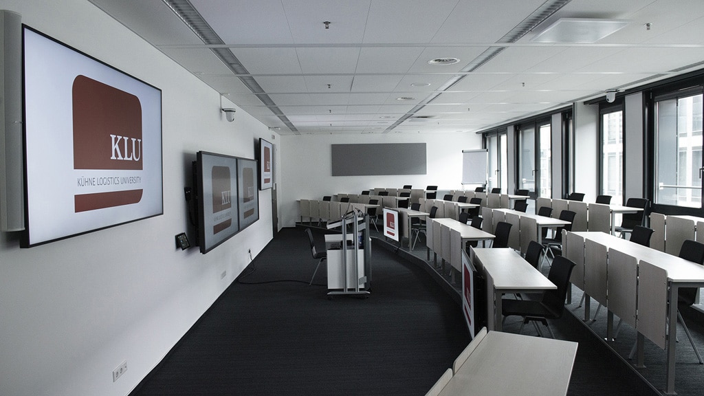 Aufgrund der Corona-Pandemie suchte die private, staatlich anerkannte wissenschaftliche Hochschule Kühne Logistics University (KLU) für ihre Räumlichkeiten in Hamburg eine hybride Lösung, die es all ihren Studierenden ermöglicht, aktiv an Vorlesungen teilzunehmen, während die geltenden Schutzmaßnahmen eingehalten werden. Für diese Herausforderung beauftragte die Hochschule Sigma System Audio-Visuell, die mit Shure für die Erweiterung der bestehenden Konferenztechnik kooperierte.