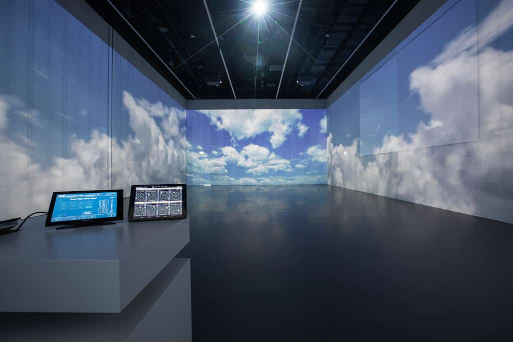 Das System im „Auditorium 360“ besteht aus 12 HMS-10 Surround-Lautsprechern an den Wänden und vier weiteren an der Decke sowie 10 UP-4slim Kompaktlautsprechern. Vier MM-10XP Miniatur-Subwoofer sorgen für die Wiedergabe der tiefen Frequenzen.