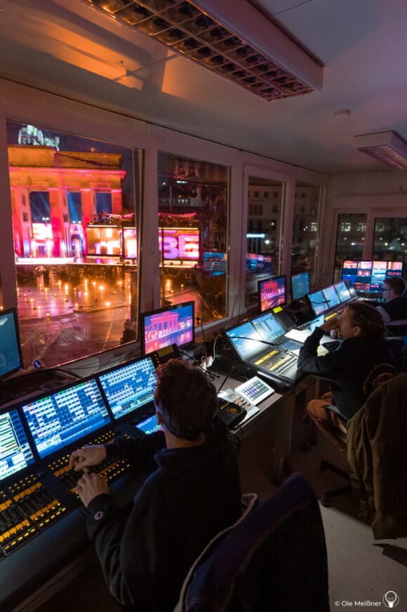 In den äußeren Bereichen der Bühne befanden sich überdachte Auftrittsflächen, während die Mitte einen offenen, ungestörten Blick auf das Brandenburger Tor zuließ und dies zum zentralen Teil der Gesamtszenerie machte. Durch die Einbettung des Tors in das Bühnendesign konnte die Energie des Ortes und die Schönheit der Architektur zur Geltung kommen.