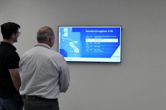 Zudem nutzen die Stadtwerke Karlsruhe kompas, um ein Raumplanungssystem einzubinden, das die Belegungsdaten der Räume automatisch einliest und auf den Displays darstellt. Verwendet werden Screens von 55 Zoll im Querformat, die an Positionen wie Empfang, Wartebereichen, Liftlanding-Bereichen und Kantinen installiert sind.