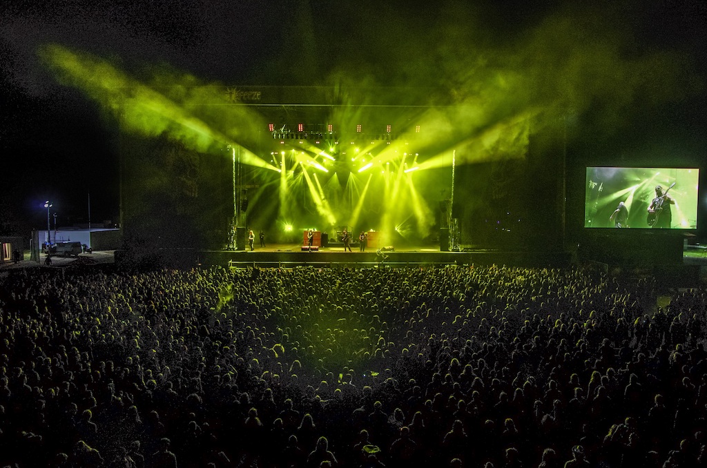 Den Schlusspunkt setzte schließlich das Summer Breeze Open Air vom 15. bis 17. August im mittelfränkischen Dinkelbühl-Sinbronn mit Auftritten von u.a. Paradise Lost, Arch Enemy, Papa Roach und Sepultura. Auch hier ist Stageco Deutschland seit mehr als 15 Jahren im Einsatz. Die 4-Tower-Bühne wurde durch seitliche Gerüstbauten ergänzt, um die aufwendige Dekoration anzubringen. Die Gesamtbreite des Bauwerks betrug somit 70 Meter. Seit vergangenem Jahr ist in die Hauptbühne eine 20-Meter-Drehscheibe integriert, die den Aufbau der nächsten Band ermöglicht, während der aktuelle Act noch spielt. Zudem kommen zwei FOH, mehrere Singletower sowie eine zweigeschossige überdachte VIP-Plattform mit integriertem Barausschank im Erdgeschoß vom Königsbrunner Unternehmen.