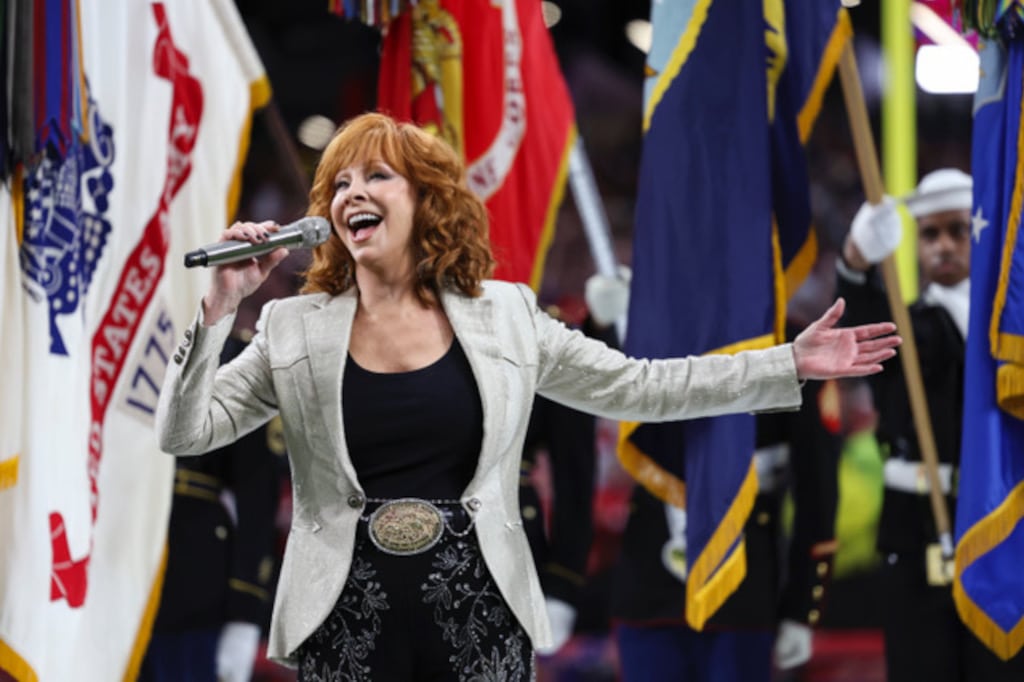 Reba McEntire hat die Nationalhymne vor dem Super Bowl LVIII zwischen den Kansas City Chiefs und den San Francisco 49ers im Allegiant Stadium am 11. Februar 2024 in Las Vegas, NV, gesungen. (Bild: Perry Knotts/Getty Images)