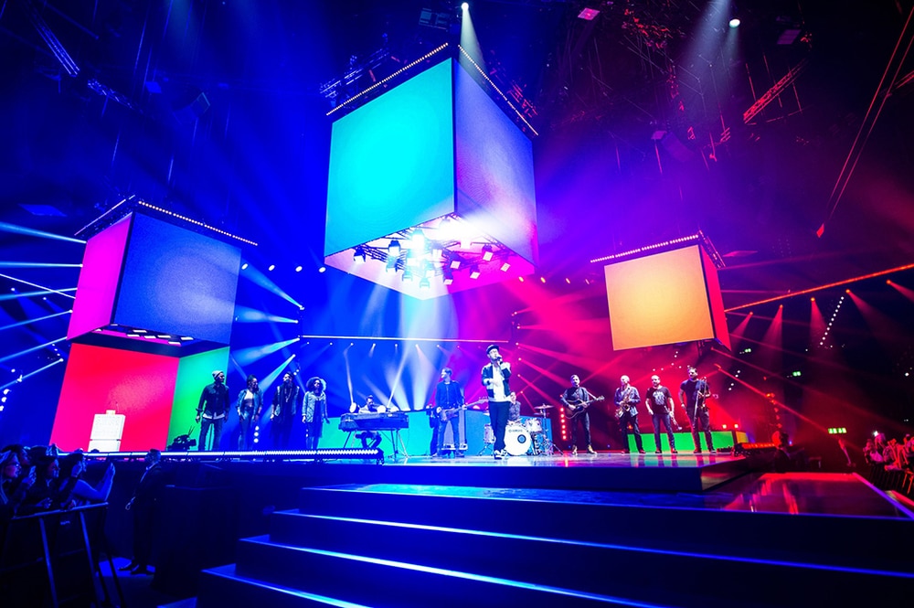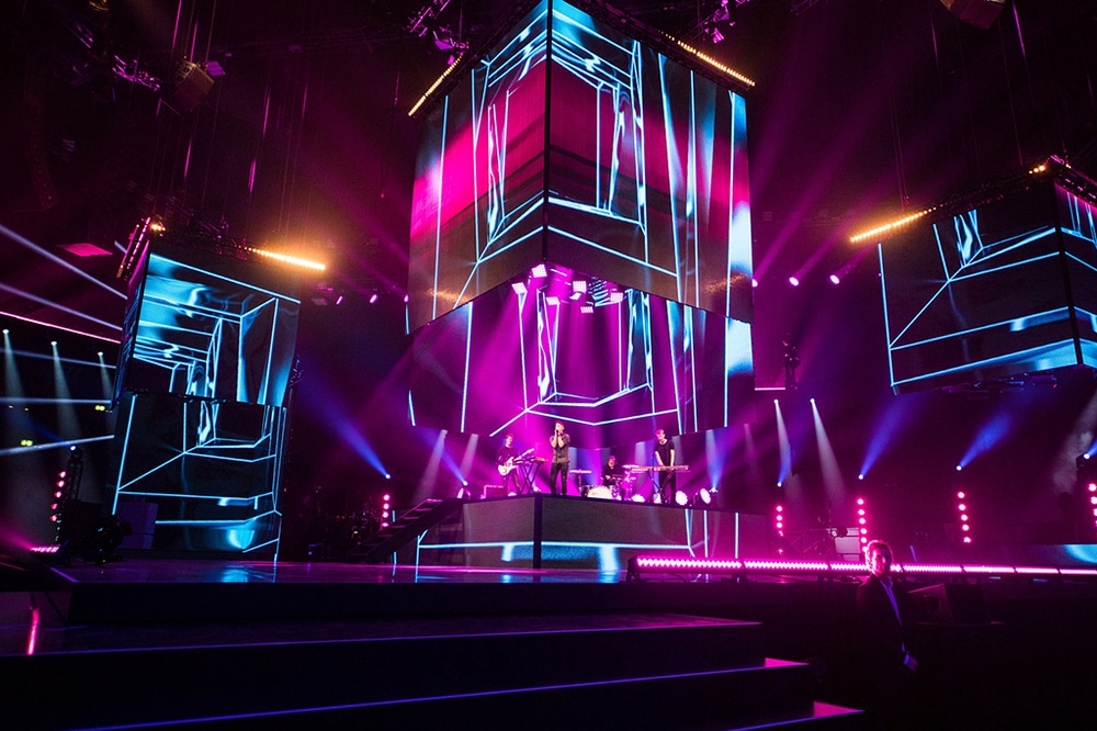 Als dominierender visueller Bezugspunkt des übergeordneten Setdesigns fungierten diverse szenische Video-Würfel, die dem gesamten Set eine enorme räumliche Höhe und Tiefe verliehen und mit dynamischem Grafikcontent sowie einheitlichen Farben bespielt wurden. Der zentral über dem Bühnenmittelpunkt positionierte, größte Videowürfel enthielt zudem eine Besonderheit: 20x ACL 360 Matrix LED-Moving-Head-Panels, die von Thomas Gerdon für eine Vielzahl an Beleuchtungsaufgaben verwendet wurden. „Wir haben die ACL 360 Matrix sowohl für Pixelmapping-Aufgaben wie auch als generische Washlights eingesetzt. Für bestimmte Auftritte kamen sie zudem auch als Hintergrund zum Einsatz“, erläutert Gerdon. „Ganz gleich für welche Anwendung – die ACL 360 Matrix meisterten jede Aufgabe mit Bravour.“ In Kombination mit der 360°-Beweglichkeit sowie der individuellen Pixelkontrolle ermöglichen die ACL 360 Matrix LED-Panels mit ihren 25x 15 Watt starken RGBW LEDs und dem engen 4°-Beam für jede Linse eine breite Auswahl an dynamischen Effekten.