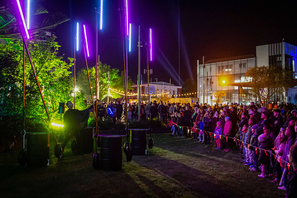 Für ihre Installation „Metronomes“ auf dem Carnival of Lights 2019 nutze die Neuseeländer Theater- und Performance Gruppe „Colossal“ um die Brüder Zane und Degge Jarvie sowie Imogen Stone die Astera Titan Tubes.