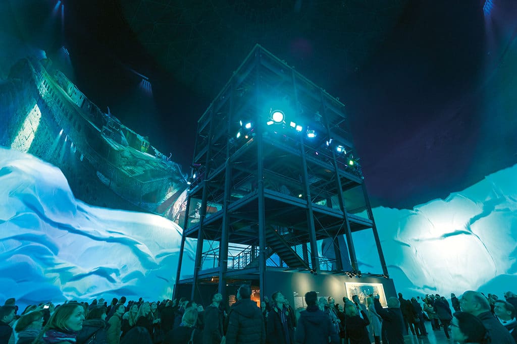 Nach Ausflügen auf den Mount Everest, Leipzig inmitten der Völkerschlacht 1813 und in die einzigartige Unterwasserwelt des Great Barrier Reefs entführt der Künstler Yadegar Asisi die Besucher des Panometers Leipzig nun 3.800 Meter unter die Wasseroberfläche – zum Wrack der im Jahre 1912 verunglückten Titanic. Im Riesenpanoramabild und mithilfe eines künstlichen Lichtszenarios kann das in zwei Teile zerbrochene Passagierschiff entdeckt werden.