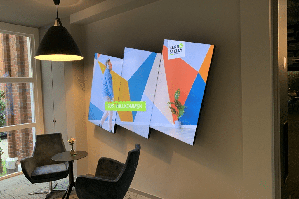 Als das Hamburger Unternehmen Kern & Stelly seine neuen Räumlichkeiten bezog, nutzte das Team die Gelegenheit, den Showroom neu zu gestalten. Der tvONE CORIOmaster2 ist nun der zentrale Videomanagement-Prozessor für große und kleine Bildschirme, die im gesamten Showroom aufgehängt sind, darunter eine Artwall-Installation mit sieben Displays. Die Inhalte reichen von Digital Signage und Demonstrationsvideos bis hin zu Marketingbotschaften und Partnerinformationen.