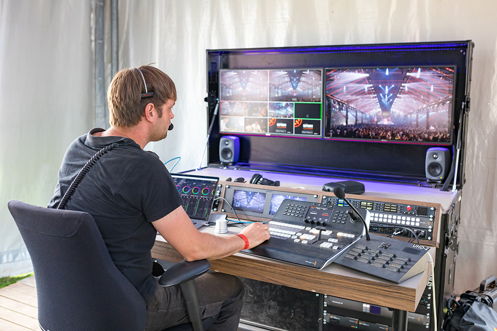 „Live-Veranstaltungen des Genres Dance Music sind einzigartig und deshalb auch auf eine innovative Content-Produktion angewiesen. Es herrscht nie Langeweile und neben Laser- und Lichtshows sind auch stimmungsvolle Kulissen Teil der Übertragung“, erklärt Dikken. „Wir wollten in der Lage sein, gelegentlich mit 24 oder 25 fps aufzuzeichnen, um für bestimmte Aspekte am Set einen filmischeren Look zu erzielen, aber dann gleich wieder zu einem gängigeren Liveproduktionsformat zurückzuschalten. Die URSA Mini Pro G2 gab uns den nötigen kreativen Spielraum, was durch die Vielseitigkeit des ATEM Mischers bei der Verarbeitung unterschiedlicher Frameraten noch verstärkt wurde.“ Dikken erklärte, dass der vom ATEM 4 M/E Broadcast Studio 4K kommende Ultra-HD-Mix zur Bespielung der großen Bühnenwände und fürs Streaming über die Social-Media-Kanäle des Festivals genutzt wurde. Ein zusätzlicher PGM-Feed wurde für einen Teranex AV abwärtskonvertiert und Broadcastern in einem Ü-Wagen-Studio vor Ort bereitgestellt.