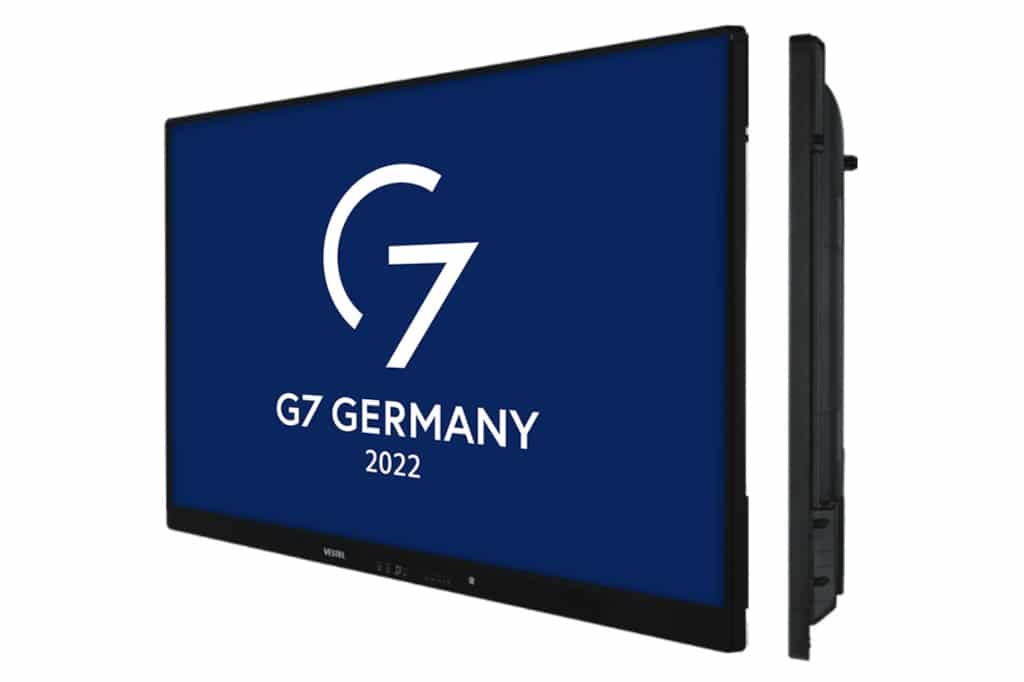 Vestel hat den G7-Gipfel, ein Treffen der Staats- und Regierungschefs aus den sieben Industrienationen USA, Großbritannien, Frankreich, Italien, Japan, Kanada und Deutschland, der vom 26. bis 28. Juni 2022 auf Schloss Elmau im Landkreis Garmisch-Partenkirchen stattgefunden hat, mit interaktiven Touch Displays der IFX-Serie ausgestattet.