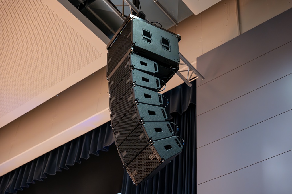 Die Installation umfasst zwei Line Arrays aus jeweils 6x VIO L208 Lautsprechern und je einem VIO S118R Subwoofer (Bild: dbtechnologies / Sascha Gansen)