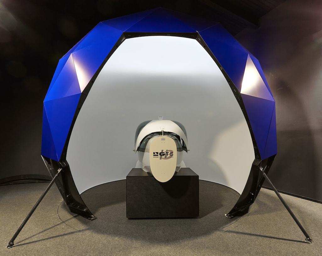 Das Simulationsprojekt beinhaltet eine Projektion mit 250 Grad Sichtwinkel und simuliert das Sichtfeld für die Piloten. Darüber hinaus musste das technische Design sowohl das Cockpit, wie auch die Projektoren innerhalb der Kuppel berücksichtigen.