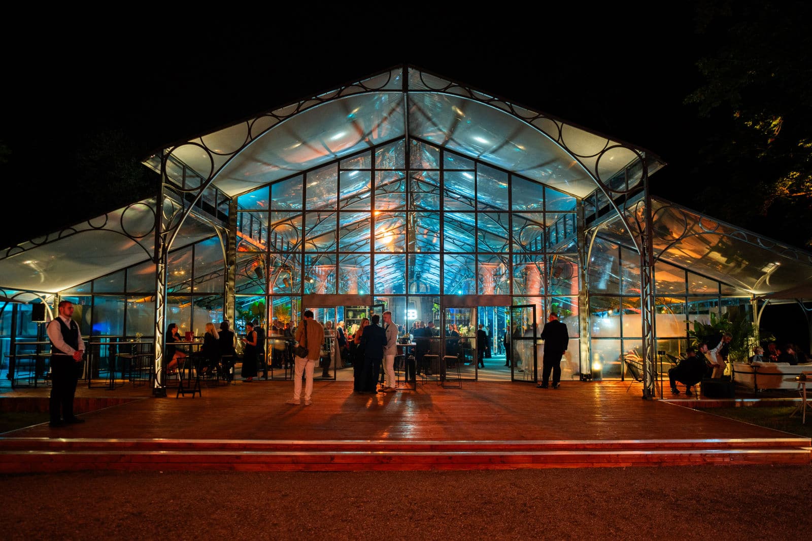 Den Höhepunkt bildete die Abendveranstaltung mit der Enthüllung eines neuen Modells: Der Beginn des nächsten Kapitels in der Bugatti-Geschichte. Dafür wurde ein Jugendstil-Zelt mit Lounge und Dining Area gebaut. Durch die transparenten Fenster fügte es sich in das Ensemble des Château Saint Jean und seinen Gärten ein.
