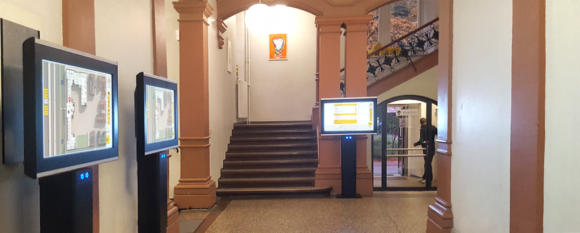 Das Ordnungs- und Bürgeramt an der Kaiserallee in der Karlsruher Weststadt umfasst derzeit drei Gebäude mit zahlreichen Büros, darunter die Abteilungen für Bürgerangelegenheiten, Straßenverkehr und öffentliche Sicherheit, das Standesamt oder die Ausländerbehörde. Sanierungsbedingte Umzüge, stärkere Nutzung der Nebengebäude mit Bürgerbüro in der Helmholtzstraße erschwerten die Kundenlenkung zunehmend. Die Projektleiterin Siham Skocic aus der Stabsstelle Organisation des Ordnungs- und Bürgeramts Karlsruhe erklärt: „Das analoge Wegeleitsystem mit Beschilderungen und Bodenmarkierungen war dafür zu unflexibel und außerdem auch nicht mehr zeitgemäß. Wir wollten eine attraktive digitale Lösung.“