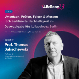 Messbare Indikatoren für urbane Events waren bisher rar. Prof. Thomas Sakschewski erforschte bei fünf Seeed-Konzerten und dem Lollapalooza-Festival in Berlin die Nachhaltigkeit von Großveranstaltungen. Im Interview stellt er erprobte Maßnahmen zur Energie- und Abfallreduzierung vor – vorgreifend auf seinen Vortrag auf der LEaT con am 18.10. in Hamburg.