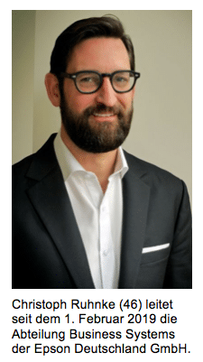 Epson stellt mit Christoph Ruhnke einen neuen Manager Business Systems vor, der seit dem 1. Februar 2019 gesamtverantwortlich die Vermarktung und den Vertrieb der Epson PoS-Lösungen für die Region DACH leitet.