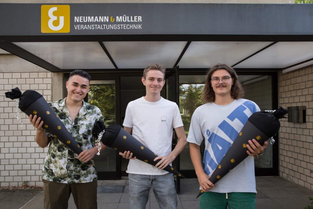 Mit dem Beginn des Ausbildungsjahres 2022 sind 57 junge Menschen zu Neumann&Müller Veranstaltungstechnik (N&M) gekommen. Damit sorgt N&M im Personalmarkt für Nachwuchs, sowohl im eigenen Unternehmen, als auch darüber hinaus.
