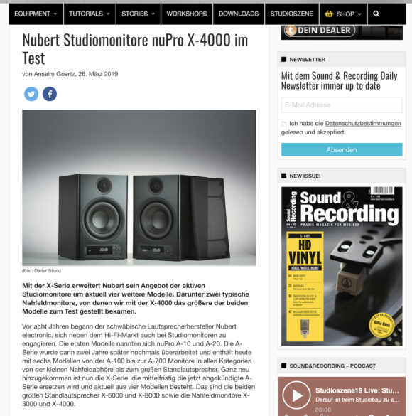 Das Interesse von Günther Nubert gilt nicht der Hifi-Szene alleine: Lange Jahre war er “bekennender Fan” der Magazine Production Partner bzw. der späteren Studio-Auskopplung daraus (Sound&Recording) mit gelegentlichem Austausch untereinander: Technische Ansätze, die im Studio- oder Livebetrieb hilfreich waren, konnten doch für Hifi-Anwender nicht grundsätzlich falsch sein? Und besonders sympathisch hat uns beeindruckt: Ein auf gesundem Menschenverstand beruhender Pragmatismus, der nicht nur zu diversen Audio-Grundsatzbeiträgen führte, sondern auch dazu, seinen Produkten als Erstausstattung einfach mal einen “Klingeldraht” für den Anschluss beizulegen. Mittlerweile hat Nubert auch eine Linie an Studiomonitoren am Start, weitere Test- und Hintergrundberichte finden sich gesammelt hier bei unserem Magazin Sound&Recording.