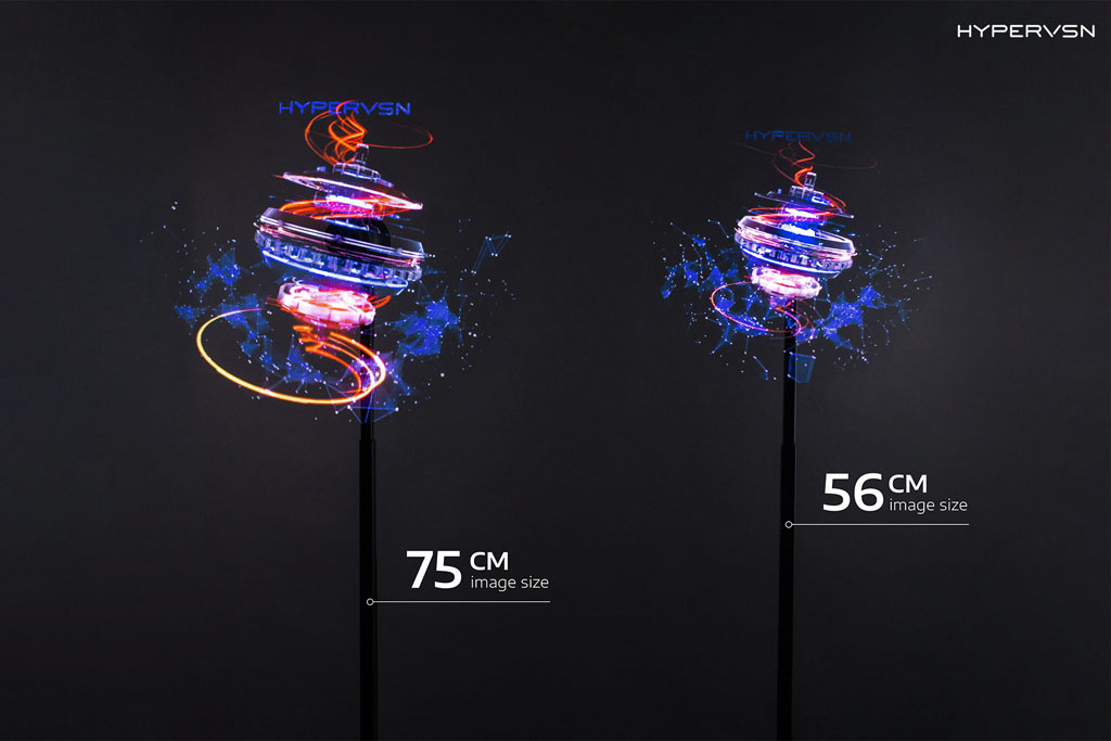 Hypersvn erschafft holographische, räumliche Darstellungen: Texte, Bilder und Videos schweben in der Luft – direkt vor den Augen, ohne 3D-Brille und auch bei Tageslicht. Die Hologramme werden durch Rotoren erzeugt, die mit LED-Leuchtdioden bestückt sind. Für kleine Visualisierungen genügt ein Einzelrotor. Größere Visuals entstehen durch beliebig viele Geräte, die synchron als eine Videowand zusammenarbeiten.