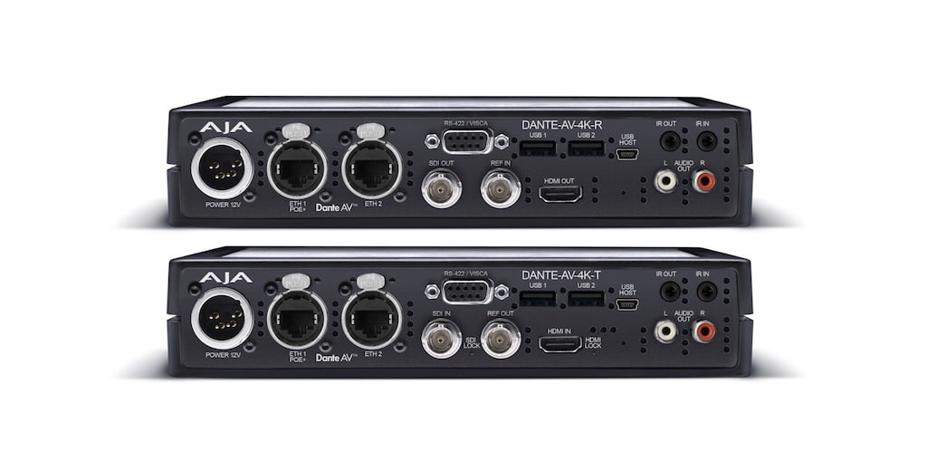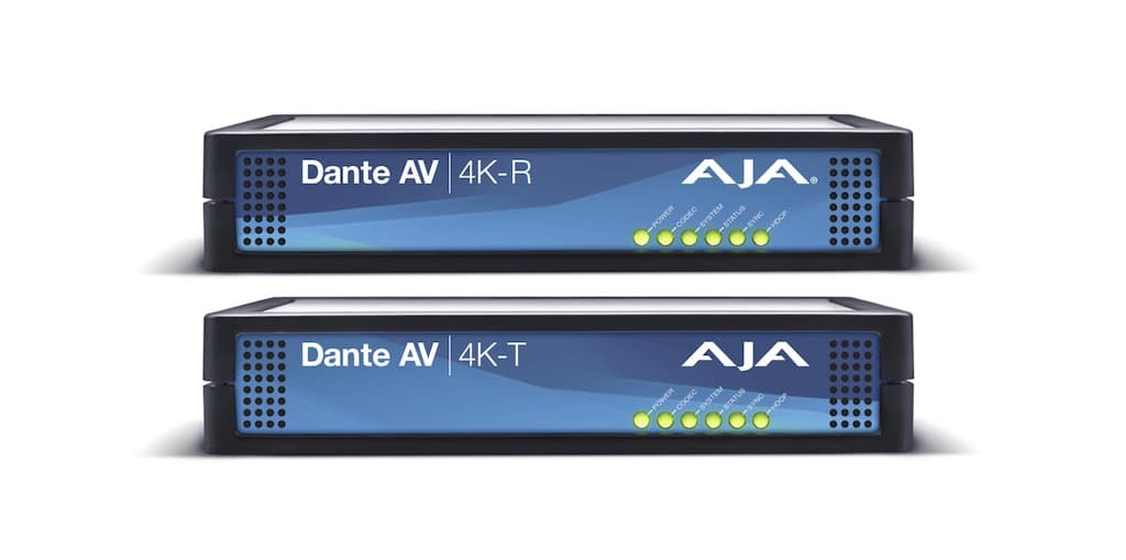 Die AJA Dante AV 4K-T nutzt Audinates neue Dante AV Ultra Lösung für Standard-1-GigE-Netzwerke und wandelt 4K/UHD/2K/HD/VESA SDI und HDMI in Dante AV Ultra-Signale um, während die Dante AV 4K-R die Umwandlung von Dante AV Ultra-Signalen in 4K/UHD/2K/HD/VESA SDI und HDMI unterstützt. Beide Geräte würden niedrige Latenzzeiten und Zeitsynchronisation bieten und so für die Lip-Synchronisation bei Bildschirmen in Veranstaltungsorten sowie bei externen Übertragungen und Streams sorgen.