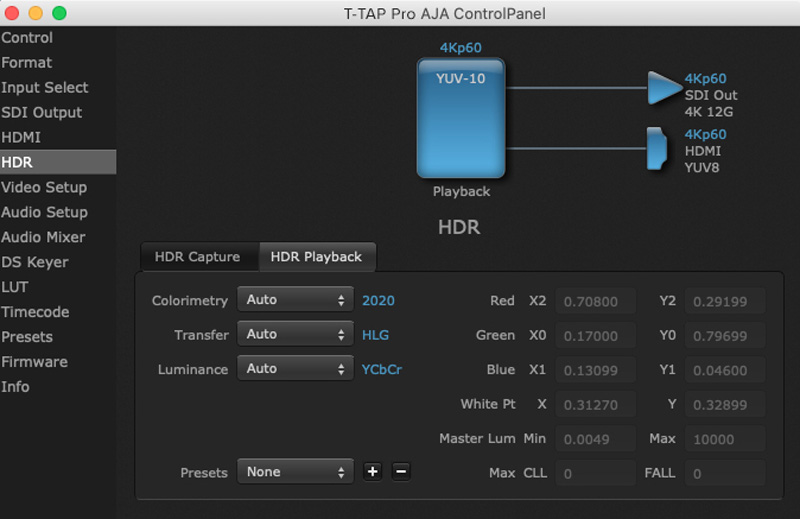 Mit der Desktop Software v16 ist HDR over SDI auf ausgewählten AJA Kona und Io Produkten und dem neuen T-TAP Pro Gerät verfügbar. Die mitgelieferte AJA Control Panel Software verfügt über eine neu gestaltete HDR-Registerkarte, die Steuerelemente für die gleichzeitige Signalisierung von HDR über SDI und HDMI bietet. Zu den neuen HDR-Funktionen für AJA Control Room und AJA Control Panel gehören die zusätzliche Erfassung von HDR-Metadaten und die automatische Erkennung von HDR-Wiedergabe für eine einfachere Handhabung bei kritischen Überwachungsanwendungen. Um AJAs 8K-Workflows weiter zu optimieren, fügt das v16-Update auch Kona 5 8K-Überwachungs- und Ausgabefunktionen für Apple Final Cut Pro und Avid Media Composer hinzu.