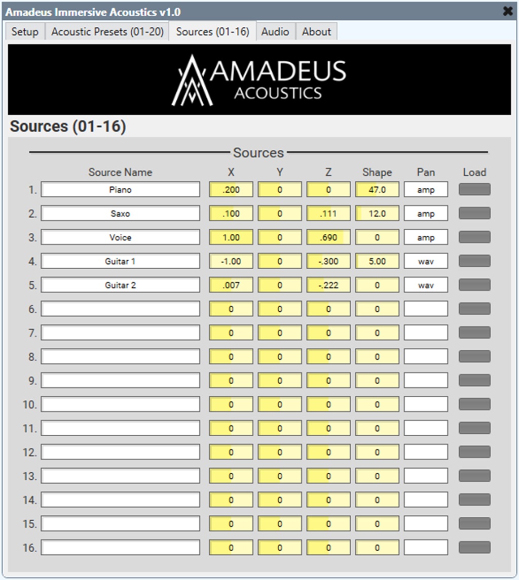 • 3d-Audio-Eingangspositionierung: Steuerung von bis zu 64 3D-Quellpositionen, einschließlich X-, Y- und Z-Koordinaten, Form und Schwenkalgorithmus. Diese Einstellungen können als Snapshots im Plugin gespeichert werden