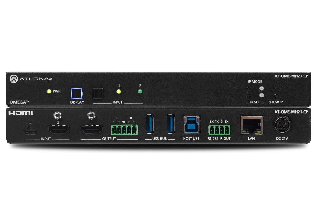 Atlona erweitert seine Omega™-Serie von Audio Video (AV)-Integrationslösungen für Präsentations-, Kollaborations- und Videokonferenz-Anwendungen um einen weiteren Switcher. Der AT-OME-MH21-CP verfügt über HDMI- und USB-C-Eingänge, erweiterte Integrationsfunktionen, USB-C-Geräteladung und einen integrierten USB-3.0-Hub für Videokonferenz-Peripheriegeräte oder Touch-Displays.
