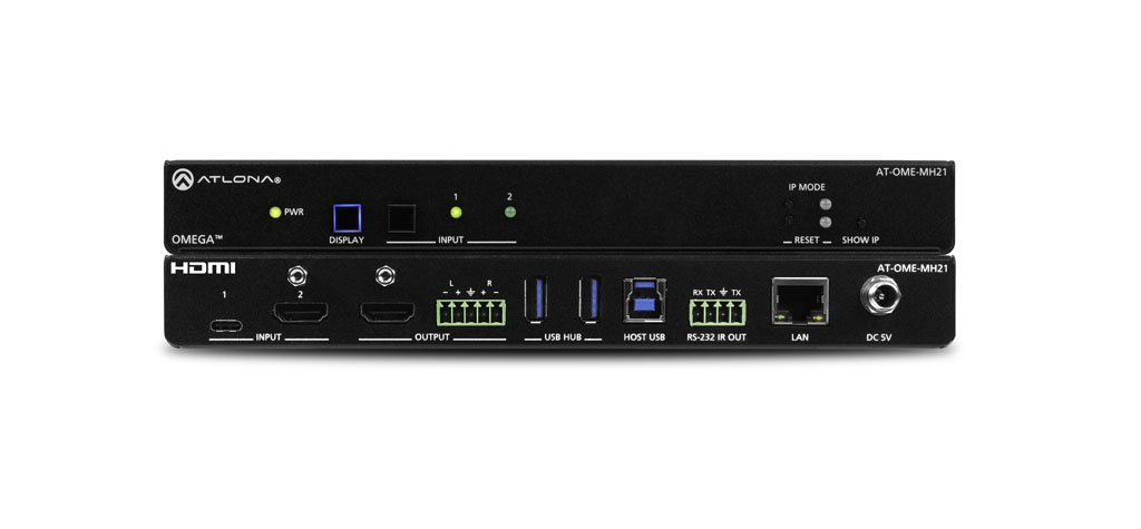 Atlona stellt einen neuen Switcher in seiner Omega Serie vor. Der AT-OME-MH21 ist ab sofort erhältlich und kombiniert HDMI- und USB-C-Eingänge mit erweiterten Funktionen und einem integrierten USB 3.0-Hub für Videokonferenz-Peripheriegeräte oder Touch-Displays.