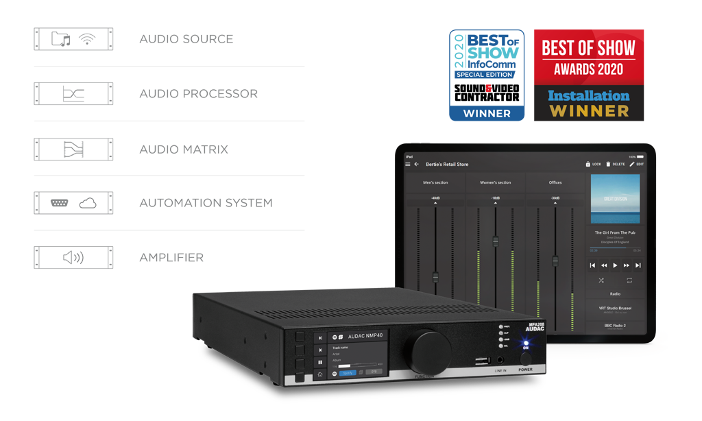 Der belgische Pro-Audio-Hersteller Audac hat die neuen MFA2xx-Multifunktionsverstärker vorgestellt. Audac möchte die neue All-in-One-Audio-Lösung als perfekte Lösung für kleine bis mittelgroße Installationen vermarkten. Die MFA-Serie ist mit Ausgangsleistungen von 80 oder 160 Watt erhältlich, ist mit Audac Touch 2 kompatibel und hat einen integrierten Source Con-Eingang im Verstärker.