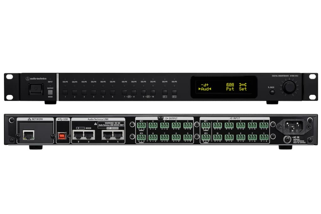 Mit dem digitalen SmartMixer ATDM-1012 präsentiert Audio-Technica einen neuen Audiomischer, der für unterschiedliche Festinstallationen geeignet ist – von Hotels und Gastronomie, Unternehmen und Installationen in Gerichtsgebäuden bis hin zu Situationen, die einen Mix-Minus-Betrieb oder das Aufzeichnen von Audiosignalen bestimmter Zonen innerhalb eines Gebäudes erfordern.