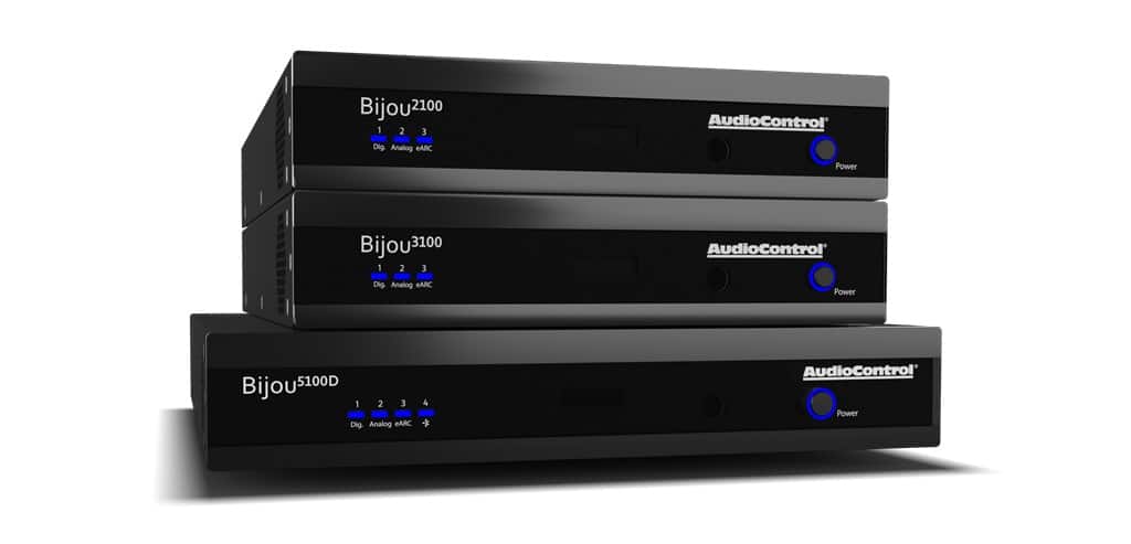 Die Bijou-Serie besteht aus dem 2.1-Kanal-Verstärker Bijou 2100, dem 3.1-Kanal-Verstärker Bijou 3100 und dem 5.1-Kanal-Verstärker Bijou 5100: