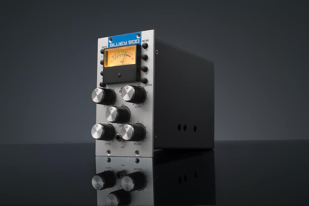 Mit dem Bluey 500 bringt Black Lion Audio diese Schaltung in das Lunchbox-Format. Damit bräuchten Anwender:innen lediglich zwei freie Slots im Modulträger, um die Kompression des Klassikers nutzen zu können. Für die Reproduktion des Original-Sounds sorgen auch im Bluey 500 Cinemag-Übertrager sowie Buffer-Schaltungen, die der Mischkonsole von Chris Lord-Alge nachempfunden sind. So bestreite der Bluey im Studio eine Doppelrolle als Dynamik-Werkzeug einerseits und Quelle für Signalfärbung andererseits.