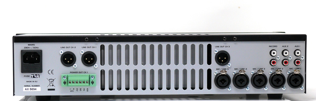 Gedacht für Installationen hauptsächlich in Kirchen, Schulen, kleineren Konferenzumgebungen, bietet das neue Gerät wie bisher 5 Mikrofon-/Line-Eingänge mit einzeln abschaltbarer Automischfunktion und 2 Aux-Pegel-Eingänge. Der Verstärkerausgang leistet 240 W rms an 50/70/100 V und 4 Ohm. Neu ist der integrierte DSP mit Technologie Made in Germany.