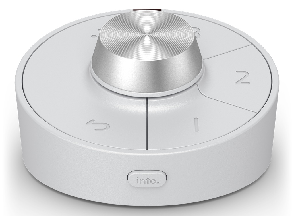Für zusätzlichen Bedienkomfort steht der kabellose Hotkey Puck G3 als Fernbedienung für das OSD zur Verfügung: Drei Funktionsbuttons, ein Drehknopf und eine Auswahlfunktion bieten Shortcuts zu oft genutzten Einstellungen und der Umschaltung zwischen verschiedenen Quellen für Bildsignale. (Bild: BenQ)