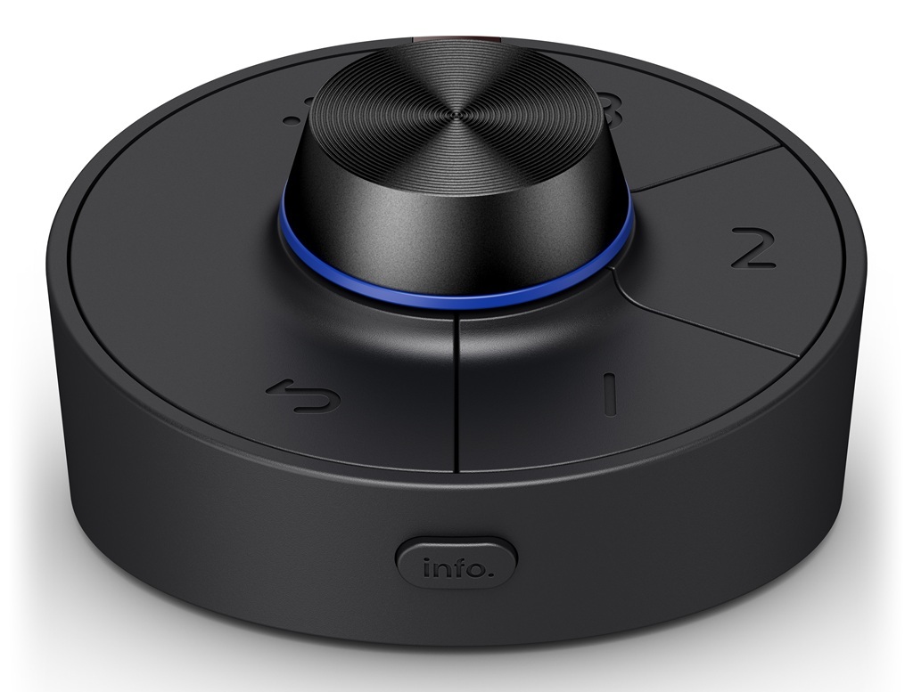 Die Bedienung erleichtert der kabellose Hotkey Puck mit einem flexibel belegbaren Drehregler und fünf programmierbaren Hotkeys (Bild: BenQ)
