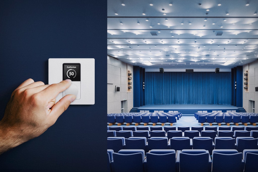 Blaze Audio Wall-S1 in weiß und im EU-Format, Einsatz in einem Auditorium