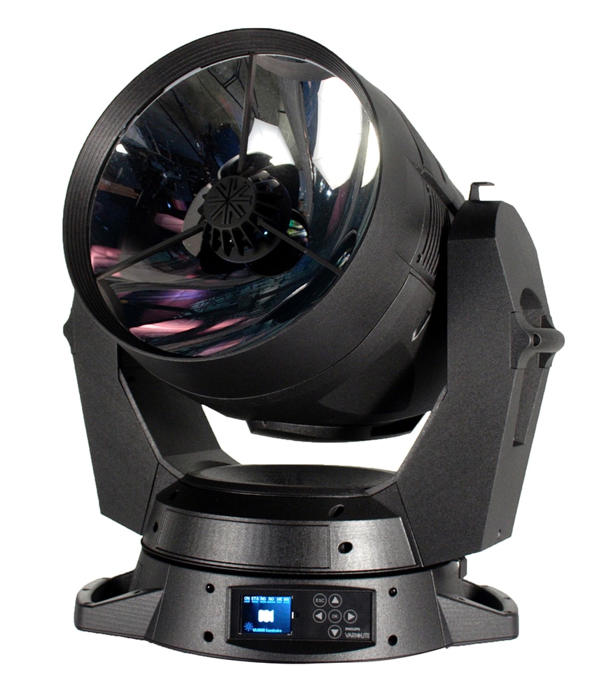 Mit dem VL6000 Beam stellt Philips ein leistungsstarkes neues Movinglight speziell für Mid-Air-Effekte vor. Eine 14“ (356 Millimeter) große Frontlinse soll unter Verwendung des exklusiven Philips-Ellipsoid-Reflektorarraysystems bei 60.000 Lumen Lichtleistung einen retro-style Beam von 6,5° erzeugen.
