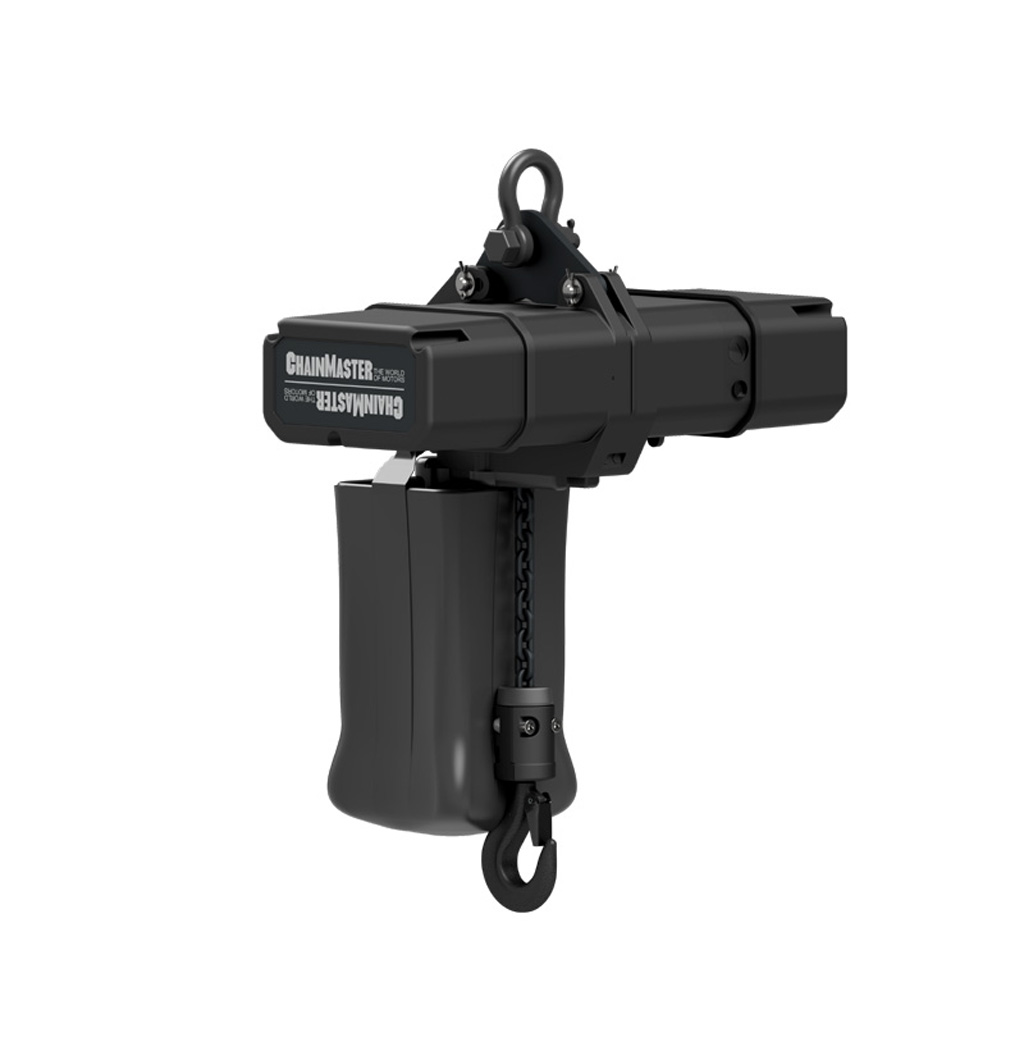 Speziell für den täglichen Einrichtbetrieb in Festinstallationen entwickelt hebt er Lasten mit 4m/min bei einer Einschaltdauer von 40 Prozent. Die Standardausstattung für das ChainMaster ProTouch-Control-System CM-880 umfasst einen Inkrementalgeber zur Postionierung, einen 4-spurigen Getriebeendschalter für Betriebs- und Notendposition, sowie einen Lastmeßschäkel der gegenüber herkömmlichen Lastmesszellen Einbauhöhe sparen soll.